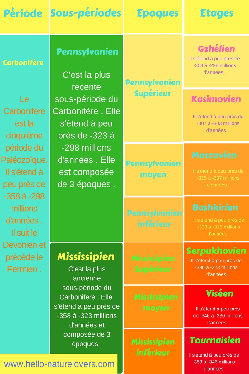 Le Carbonifère est une période subdivisée en deux sous-périodes : Le Mississipien et le Pennsylvanien.